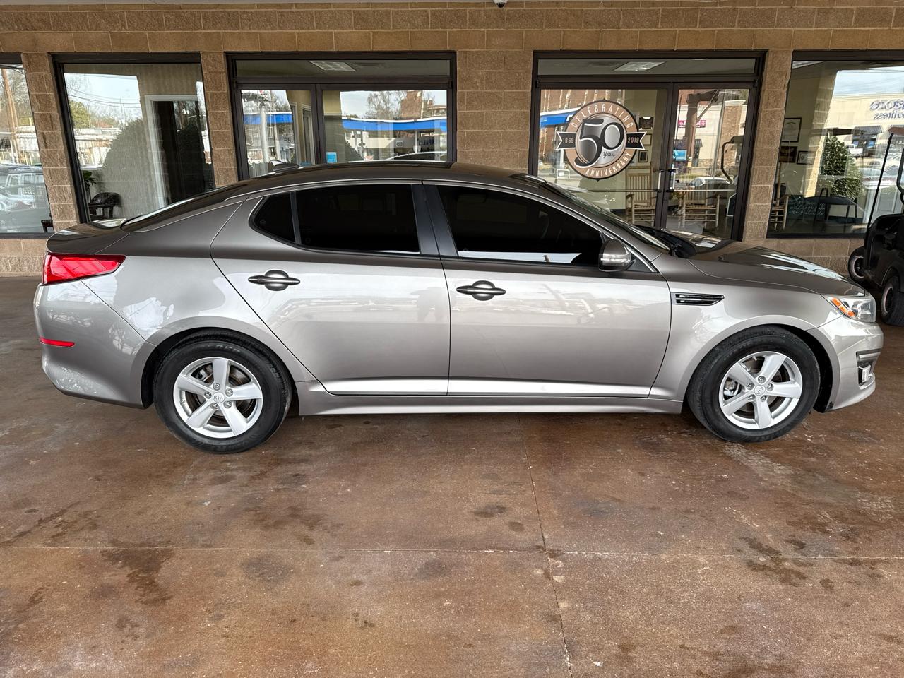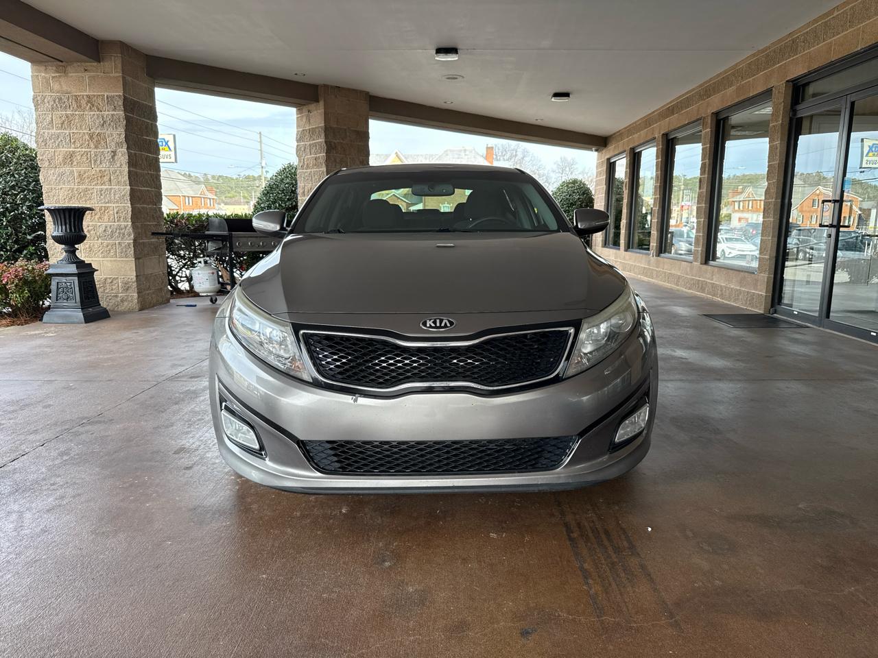 Step inside this sleek Pewter 2015 Kia Optima and feel the power of the 2.4L DOHC I4 GDI engine paired with a 6-Speed Automatic transmission. Glide through the streets with front-wheel drive and a sporty 2.88 axle ratio for a fun driving experience. This Optima is not only stylish on the outside with its chrome accents and fog lamps but also packed with convenient features inside, like a remote keyless entry and power-adjustable driver's seat.